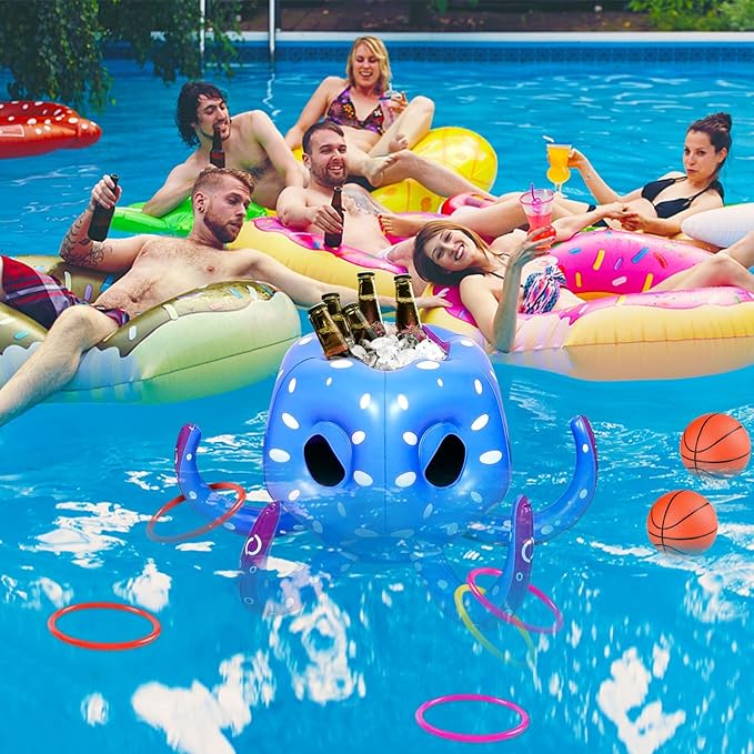 - ๐ฆ๐๐บ๐บ๐ฒ๐ฟ ๐ฃ๐ผ๐ผ๐น ๐ฃ๐ฎ๐ฟ๐๐ ๐ง๐ผ๐๐: The full set of inflatable pool toys has a unique octopus design, including 1 inflatable octopus, 2 basketballs, 6 rings, 2 air pumps. Fun pool toys, comes everything you need to play, provide an exciting pool play experience this summer. When not in use, the toy octopus also looks cute floating in the pool.