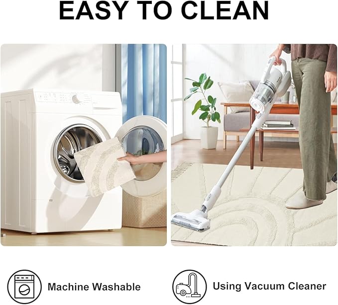 - [Easy to Care] Our boho rug for living room is machine washable, making it perfect for busy households with pets or children. Machine wash in cold water (do not add bleach) and hang dry. Use a vacuum without a beater bar for daily care.