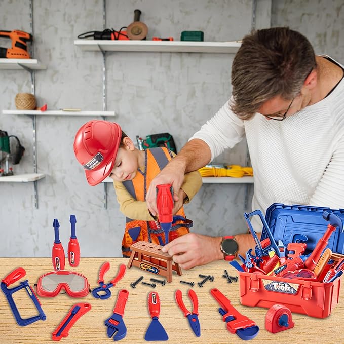 - 【Perfect Gift Choice for Kids】This toy toolbox is an ideal gifts for birthday parties, festivals and holidays (Children’s Day, Christmas, Halloween, Thanksgiving & New Years). These toys suit for boys and girls over three years old. Give a unique gift for any tool-Loving child.