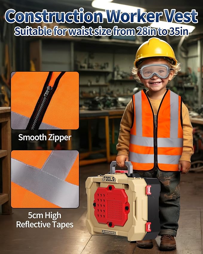 - 【Tool Box & Workbench in One Design】 You can turn a toolbox into a tool bench by assembling, and when you're done playing, you can take it apart and turn it back into a toolbox. Designed to be compact and convenient, your child can easily carry it around whether travelling, partying or in the backyard.