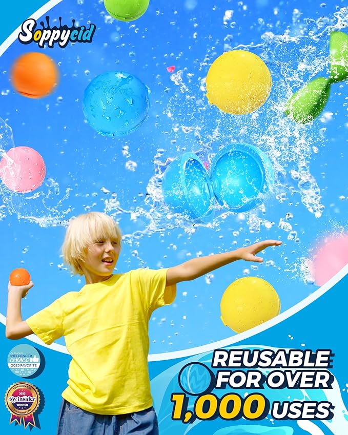 - 【 More Than 1000 Reuses for Endless Water Fun】 -- Soppycid water balloons resuable are made with unique magnetic technology and durable tear-resistant silicone. It can be used up to more than 1000 times. Join our water balloons for sustainable summer fun!