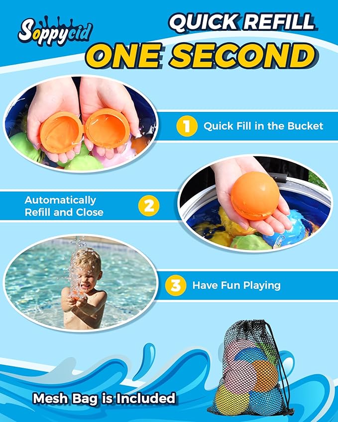 - 【 Outdoor Fun in Summer 】-- Looking for a cool way to spend a hot summer? Sopppycid water balloons are undoubtedly a good choice. Place the water balloon in the water and it will fill quickly in just a few seconds, slowing down the waiting time to enjoy the coolness. Our water balloons are perfect for summer, beach, pool, pool parties, park, backyard, and outdoor water fights.