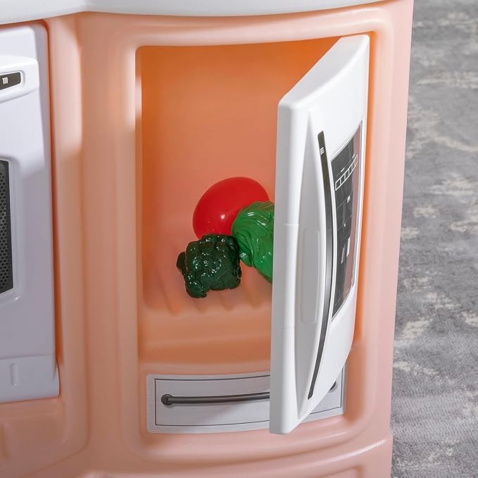 Step2 Quaint Kids Kitchen Playset, Indoor/Outdoor Kitchenette, Interactive Play, Made of Durable Plastic, Includes 21 Piece Toy Accessories, for Toddlers 2+ Years Old, Rose Pink