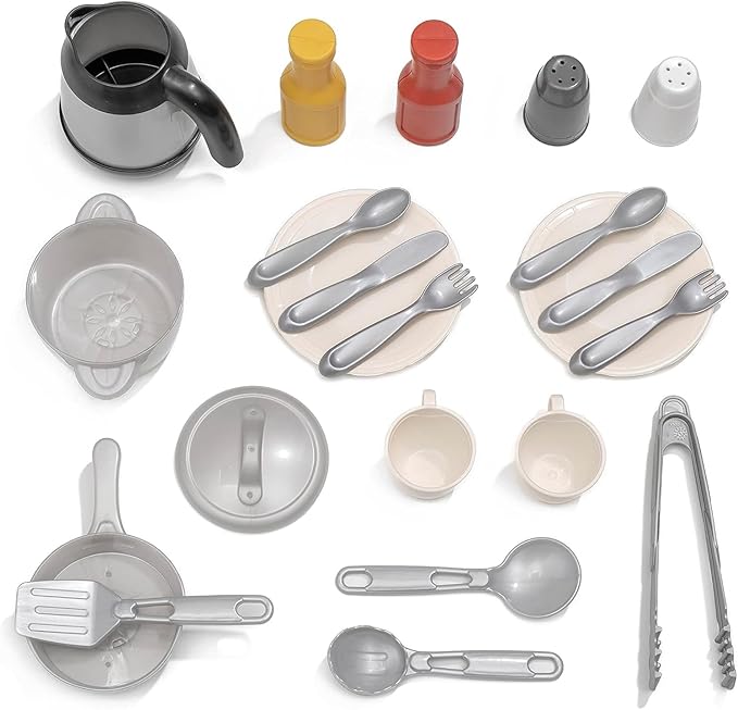 - INTERACTIVE TOYS: Realistic features, 21-piece toy kitchen play set, enhance playtime with pots, pans, silverware, coffee pot (food not included)