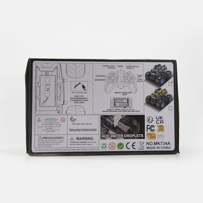 - 【Remote Control Car Monster with Tail Spray, Music and LED Lights】This distinctive RC Dinosaurs Monster Truck features stylish music, rhythmic lights, and a more realistic tail spray. Various features are combined in a RC car, making it the most interesting gift for children.