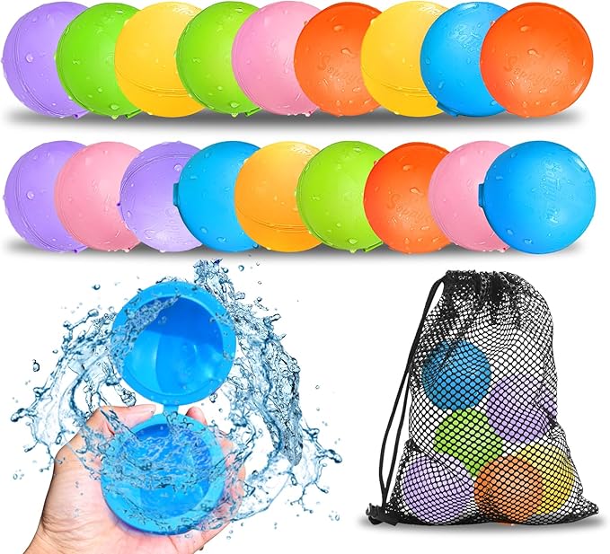 SOPPYCID 18PCS Reusable Water Balloons - Quick Fill Water Balls Toys For Toddler Age 4-8 - Refillable Magnetic Self-Sealing Water Splash Bomb For Summer Party Pool Outdoor Beach Toys for kids Age 8-12