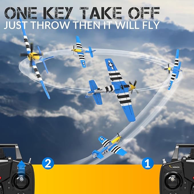 RC Plane for Adults and Kids, 4 Channel Hobby Remote Control Airplane P51 Mustang Fighter with 6-Gyro System for Beginners Learning to Fly
