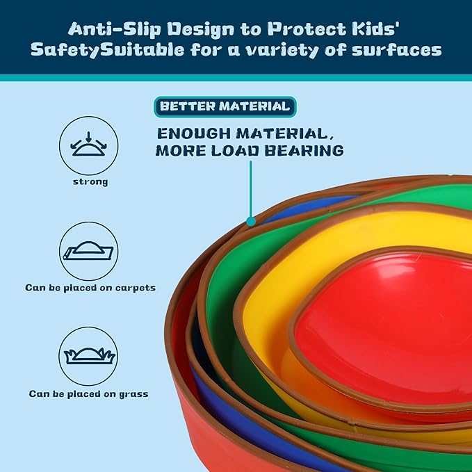 - BOOST COORDINATION AND BALANCE WITH NON-SLIP STONES: Our light weight stepping stones have rubber grip on the bottom to prevent sliding or slipping. They can help children improve their gross motor skills on any floor type