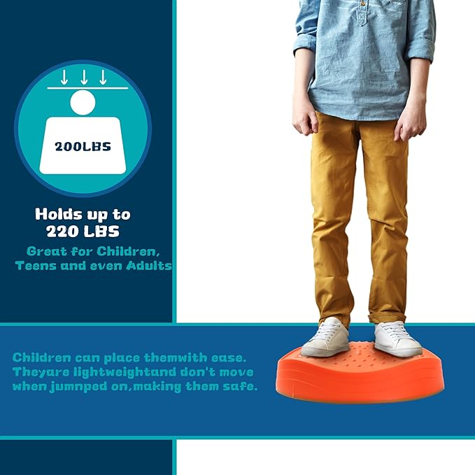 - FUNCTIONAL DESIGN & EASY TO STORE: Kids can play with their friends or family members on balance stepping stones which are sturdy and can support up to 220lbs of weight. They are also easy to wipe clean and can also be stacked together for easy storage when not in use