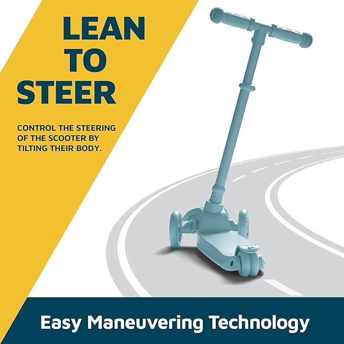 - BUILT-IN LED LIGHTS: Our toy scooter features multicolored LED wheel lights that activate while rolling, enhancing fun and safety. Ideal for indoor and outdoor use, this lightweight, compact scooter promotes balance and coordination.