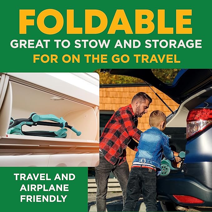 - KIDS SCOOTER: Our 2in1 kick scooter offers a standing ride option and a sitting option thanks to the integrated folding seat. The 3-wheel kick scooter design offers premium stability on long-lasting, super smooth gliding wheels that flash when moving!