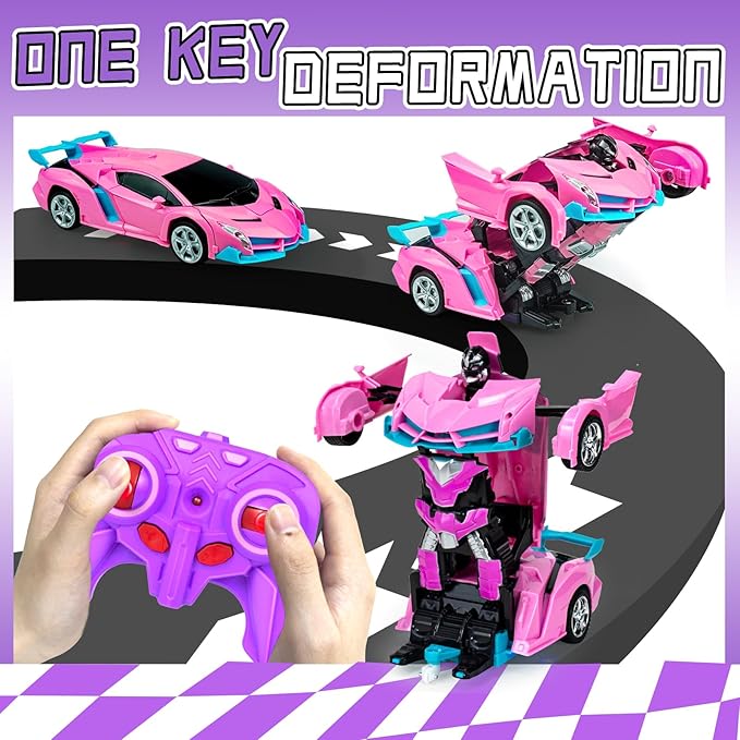 - 【Great Gift for Kids 3-12 Years Old】Rc transform car toys is pink colors design and 2 fun ways to play. The remote control car in a beautiful box as boy girls for ages 3 4 5 6 7 8 9 12 birthday gifts, Halloween, Christmas gifts or party gifts