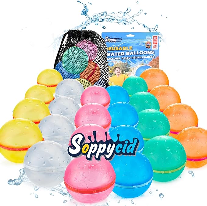 24 PCS Reusable Water Balloons, Refillable Magnetic Water Balls for Outdoor Games, Self Sealing Water Splash Bomb Quick Fill for Summer Fun, Pool Beach Toys for Kids Ages 3-12