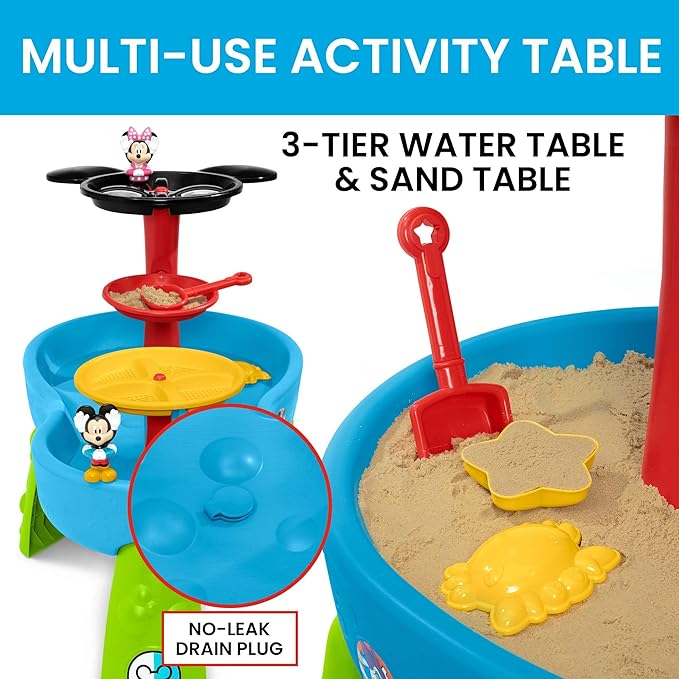 Disney Mickey Mouse Water Table by Delta Children| 3-Tier Water Play Table with 11-Piece Toy Set | Water Sensory Table + Summer Beach Toys for Outside Backyard for Toddlers Ages 2+, Blue