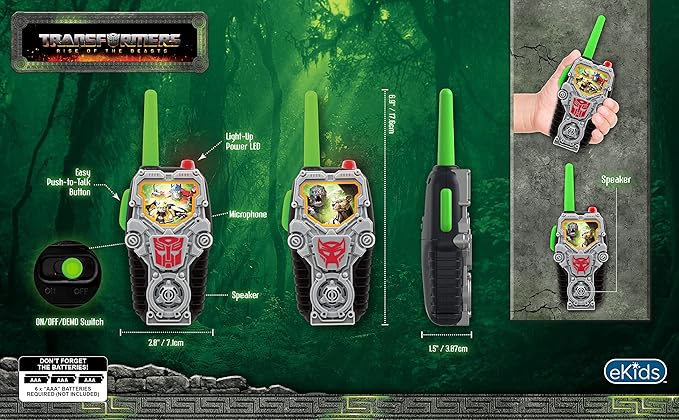 - Walkie Talkies for Kids: Two way radios featuring cool light-up graphics and design inspired by Transformers: Rise of the Beasts