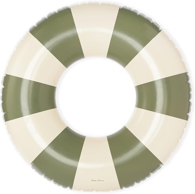 Petites-Pommes Float Ring for Kids - Durable Inner Tube, Handprinted Classic Striped Design Striped Pool Float, Soft Comfort Seaming, Packable Floats for Travel, Military Green, 35 inch