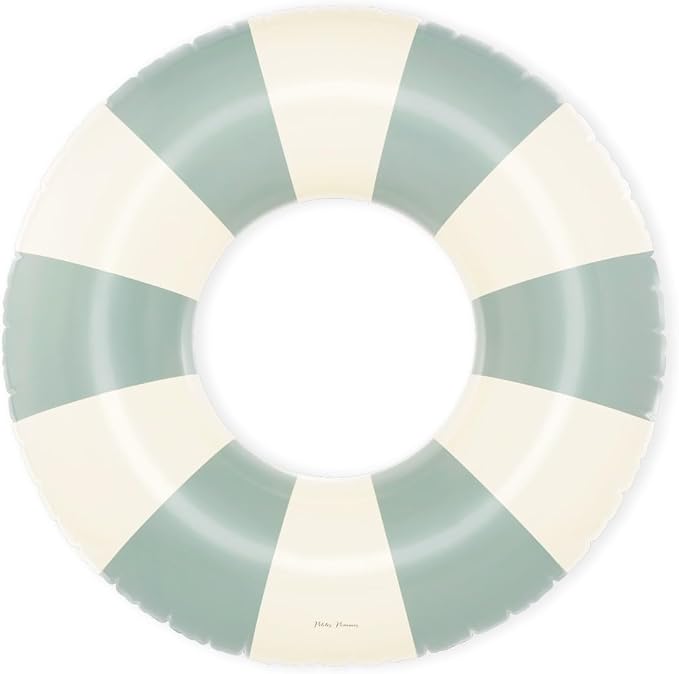 Petites-Pommes Red and White Striped Pool Tube for Kids - Durable Inner Tube, Handprinted Classic Striped Design Pool Donuts, Soft Comfort Seaming, Packable Floats for Travel, Dusty Green, 35 inch