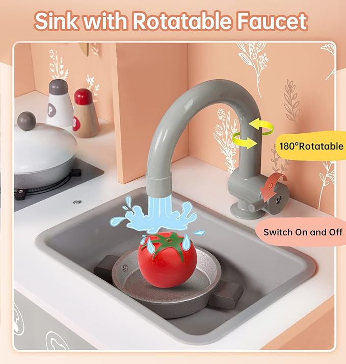 - 【We Focus on Quality】Play Kitchen Made of eco-friendly, non-toxic wood, BPA-free. We have strict requirements for the wood in each play kitchen. It greatly surpasses the physical and chemical safety tests required by the US ASTMF-963 and EU EN-71 standards. Because it matters to kids' health.