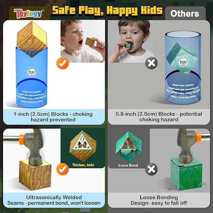 - 【TODDLER & BEGINNER TOYS MINE WORLD MAGNETIC SET】Unlike other magnet toys on the market, our magnetic cubes kit is easier for toddlers ages 3+ to stick the cubes together and make builds sturdy. And round edges and the right size won't hurt little hands. Perfect STEM toys help kids gain a deeper understanding of the structure world and learn about magnetic properties. Recommended toys gifts for toddlers and kids ages 3-8.