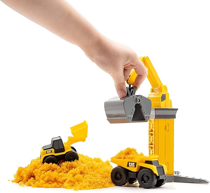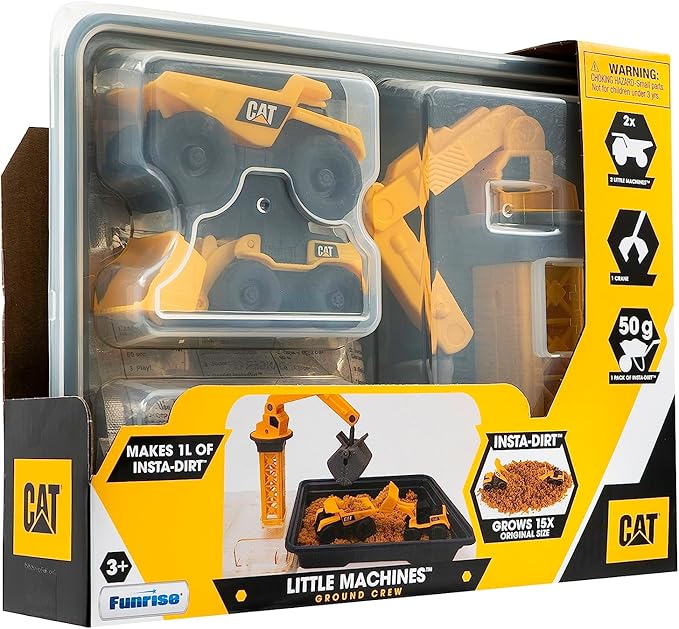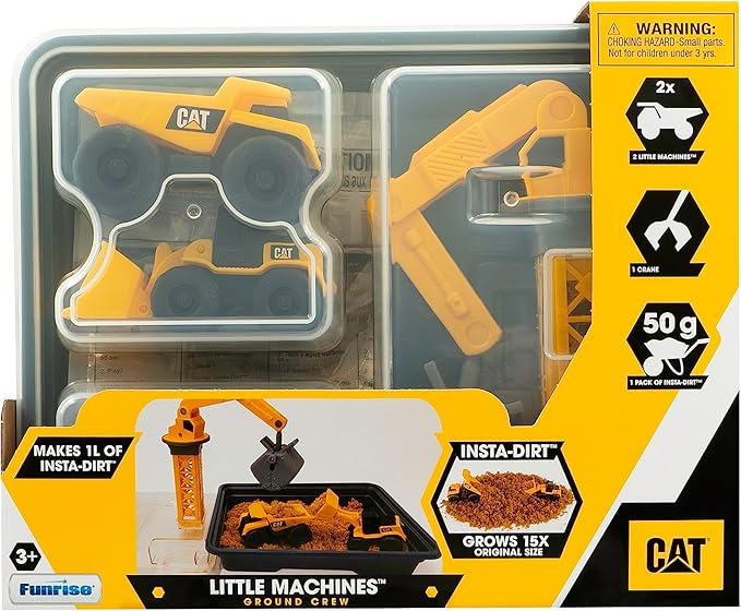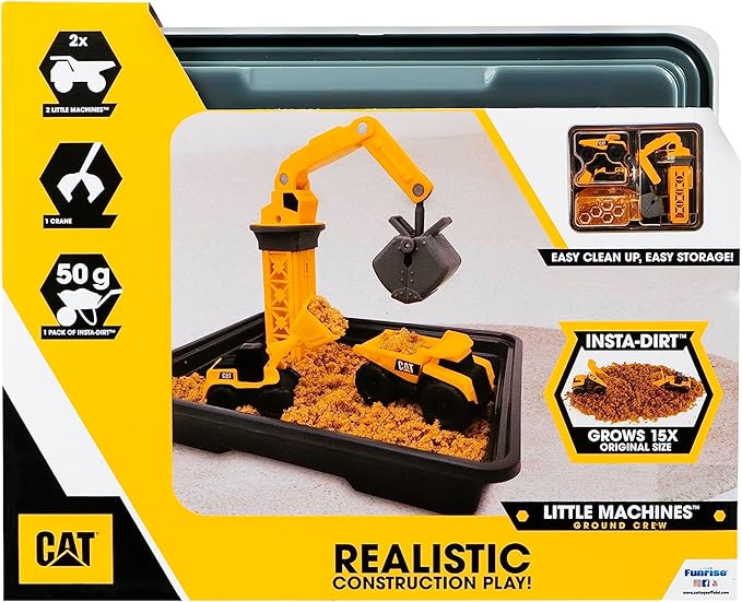 CAT Construction Toys Little Machines Ground Crew Playset with Insta-Dirt - Sensory Toys for Kids Ages 3 and Up - 15X Fast-Growing Dirt Compound & 2 Vehicles - Ideal Gift for Boys & Girls