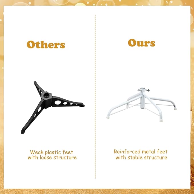 - 【Stable & Folding Metal Stand】 Equipped with a reinforced metal stand, this skinny Christmas tree can be supported stably and uprightly. Each foot is connected with bottom pad to better protect the floor. And the folding feature makes the assembly and storage easier.