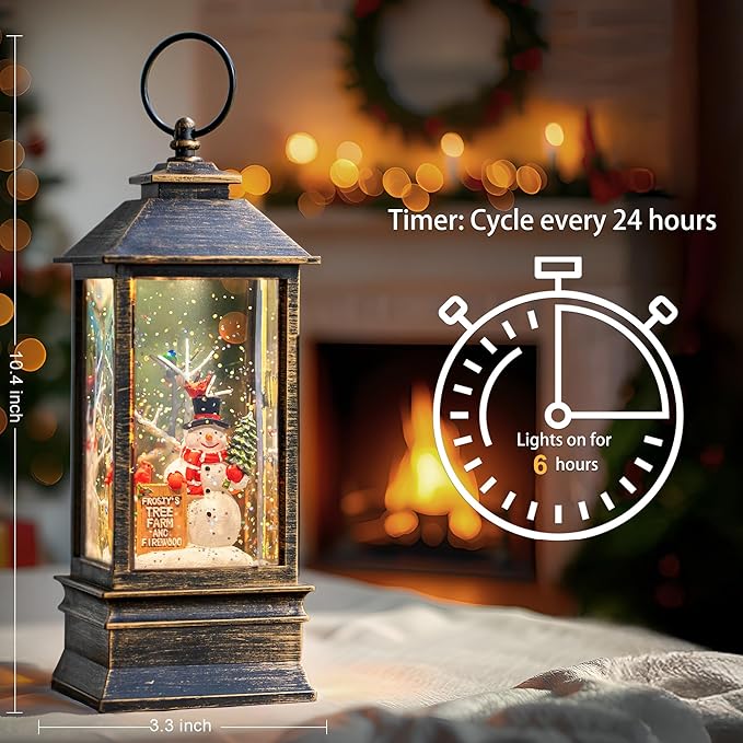 - 🎄🔮🎁included in the package: Frosty the Snowman sparkles in the Musical Water Lamp, and when turned on, warm LEDs illuminate the figurine, adding a whimsical touch of the Christmas holiday season to our water lamp. The figurine holds a sign that reads ‘Frosty's Tree Farm and Fire Wood’ and is flanked by a white tree, cardinals, and a tall hat with a red and white striped scarf!