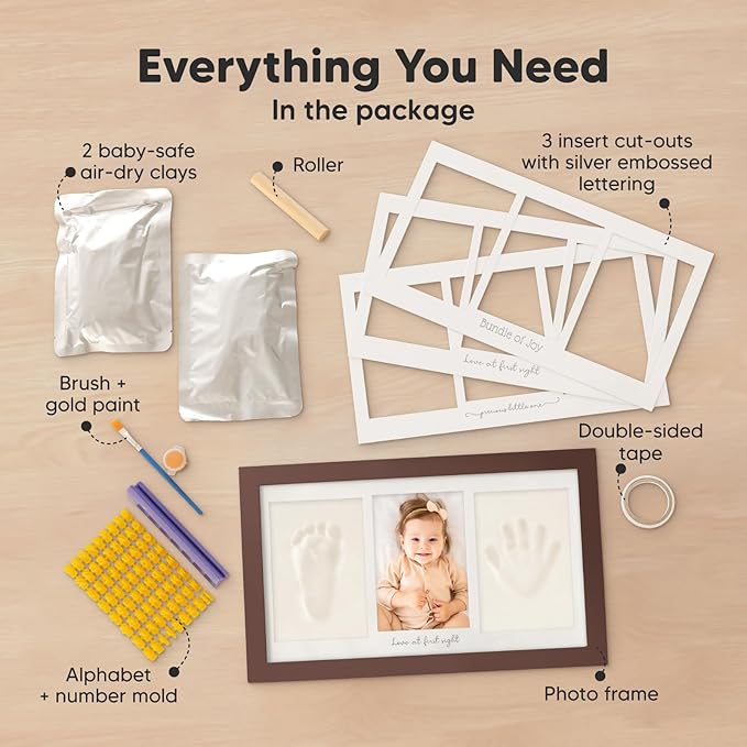 - 100% Safe Food-Grade Clay - Our baby picture frame features 100% baby-safe air-dry clay, perfect for preserving your baby prints. Our premium material ensures durability, the baby hand and footprint maker will look flawless for years to come.