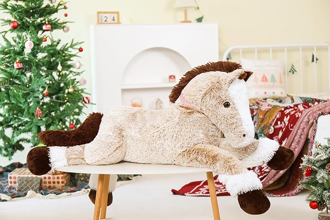 - Big Pony Plush Pillow: Large stuffed horse toy is 47 inches from head to toe, a giant plush horse pillow. Cuddle and lean soft huge stuffed horse pillow, you will feel comfortable. Our jumbo foal toy plush has passed the CPSIA certification and complies with the CPSC standard for MaoGoLan Branded products