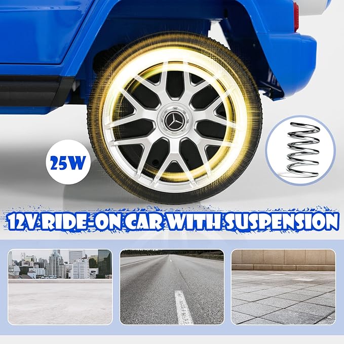 - 12V Powerful Driver: Powered by two 25W rear motors and 12V rechargeable battery, this mercedes benz car for kids is able to play for 40-60mins with fully charged and the max speed can up to 5 km/h.