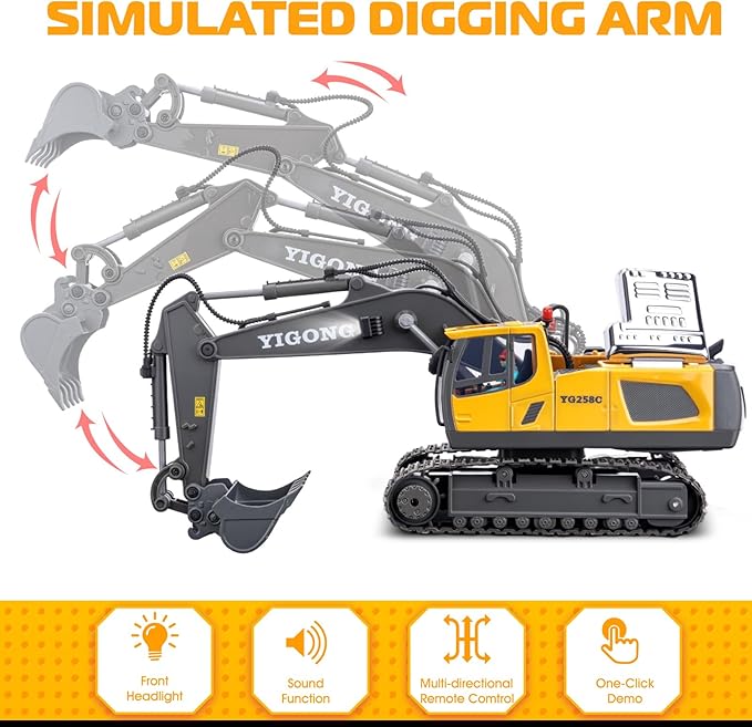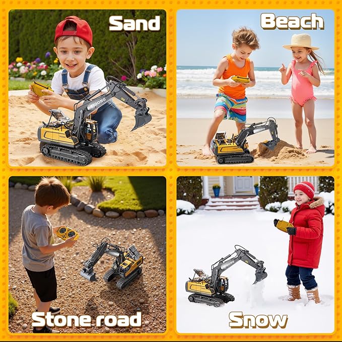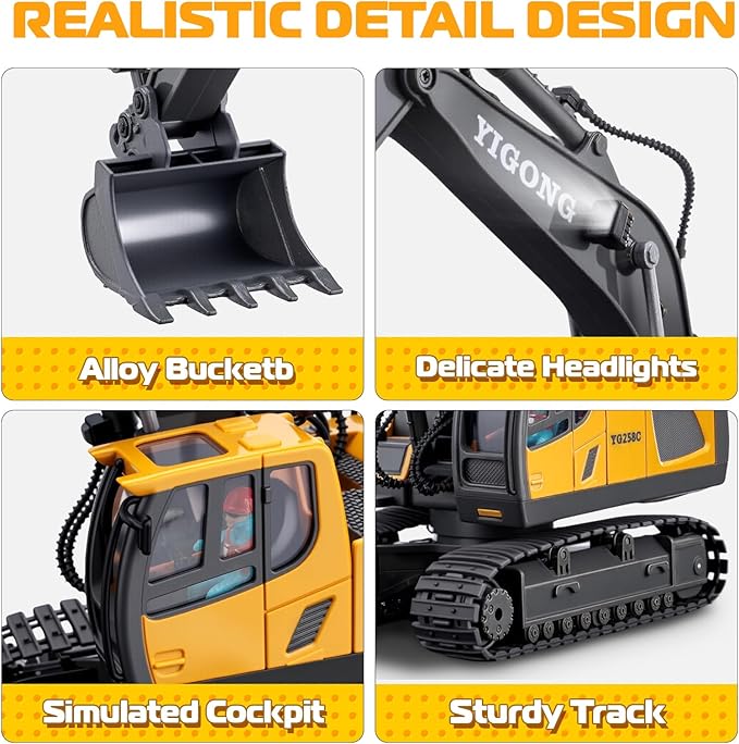 - 【Lighting & Multi-Directional Control Excavator Toy】: The kids excavator toys comes with a powerful 2.4Ghz transmitter, allowing effortless navigation in all directions. Want to add more excitement to your playtime? Our rc excavator also features a one-click sound button that plays music and built-in headlights for an even more immersive play experience. Have fun with your family and friends!