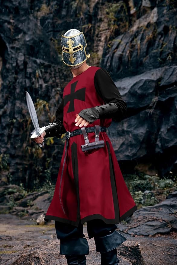 - Occasion -- Bravely charge into battle or the party in this medieval Crusader Warrior Halloween Costume for adults! This historical inspired costume is perfect for Halloween trick-or-treating, themed parties, or cosplay events. Complete this look by adding weapon or sword prop to make you look like a real warrior ready to head to the frontline or save the princess.