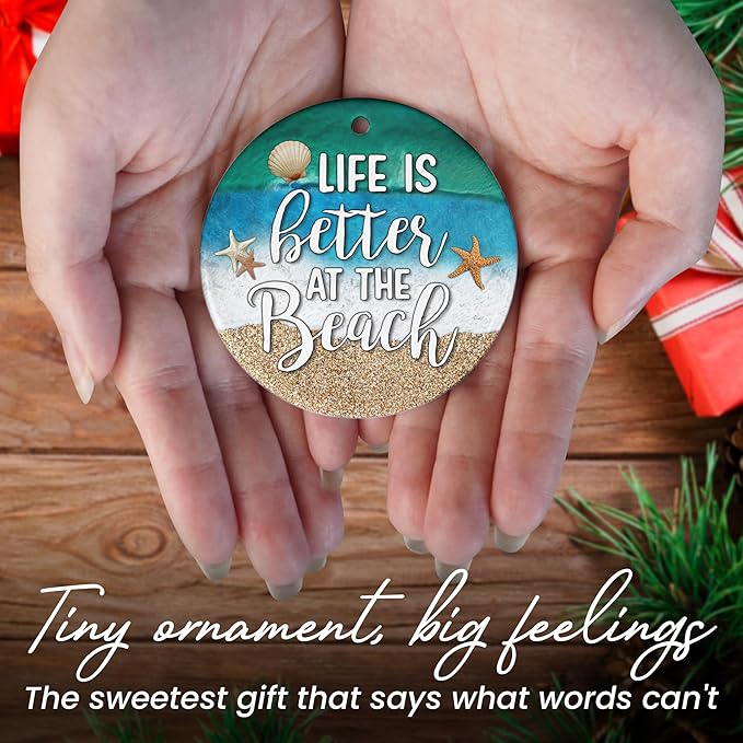 OASSIE Christmas Beach Gifts for Women Men - Ceramic Christmas Ornaments 2025 for Tree Decorations - Beach Themed Gifts for Mom Dad Family Friends Couple, Beachy Decor for Xmas Decorations