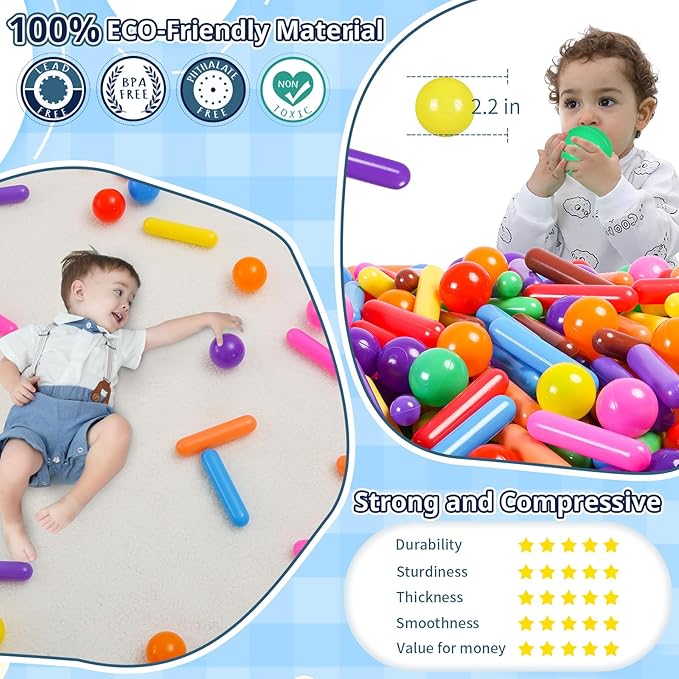- 🎡It is very suitable for filling any ball pit, play tent, play room, baby swimming pool, play fence and bounce room. Ideal for baby or toddler ball pits, children’s swimming pools, indoor fences and parties, baby bath toys.