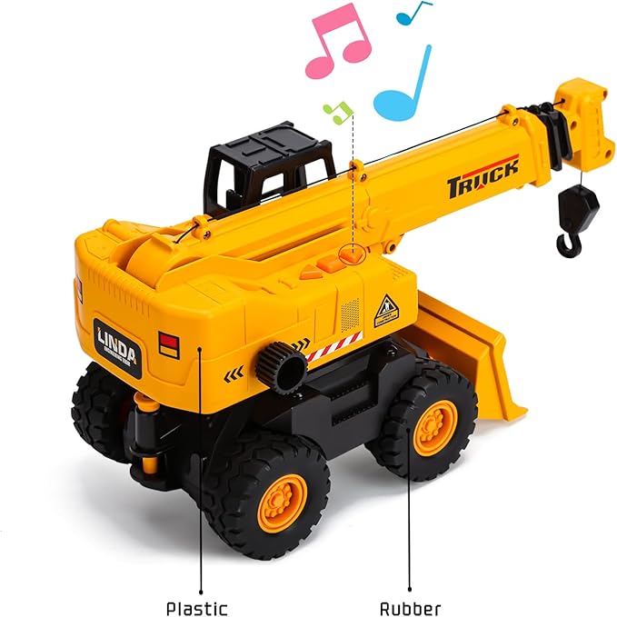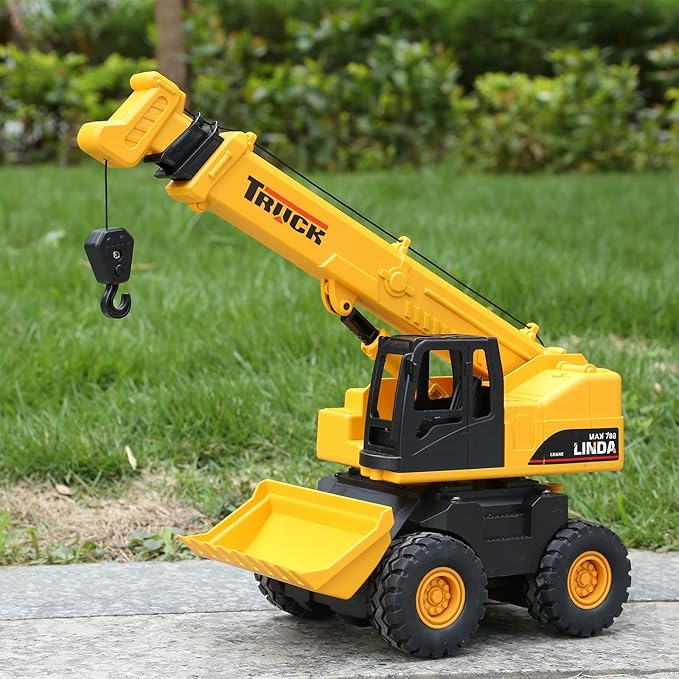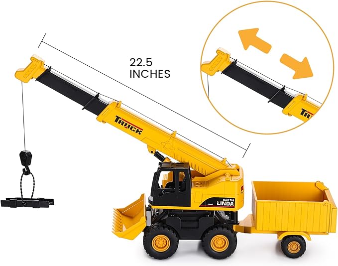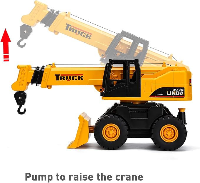 - 【2 in 1 Truck Crane Bulldozer Toy】: Construction truck toy comes with one Excavator truck and one Crane truck.A excavator truck can be used to dig up large pieces of land, transport sand or other things. This crane can lift and carried little stuff.