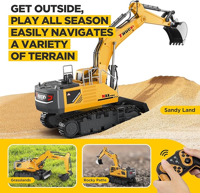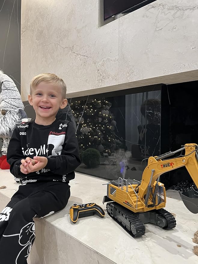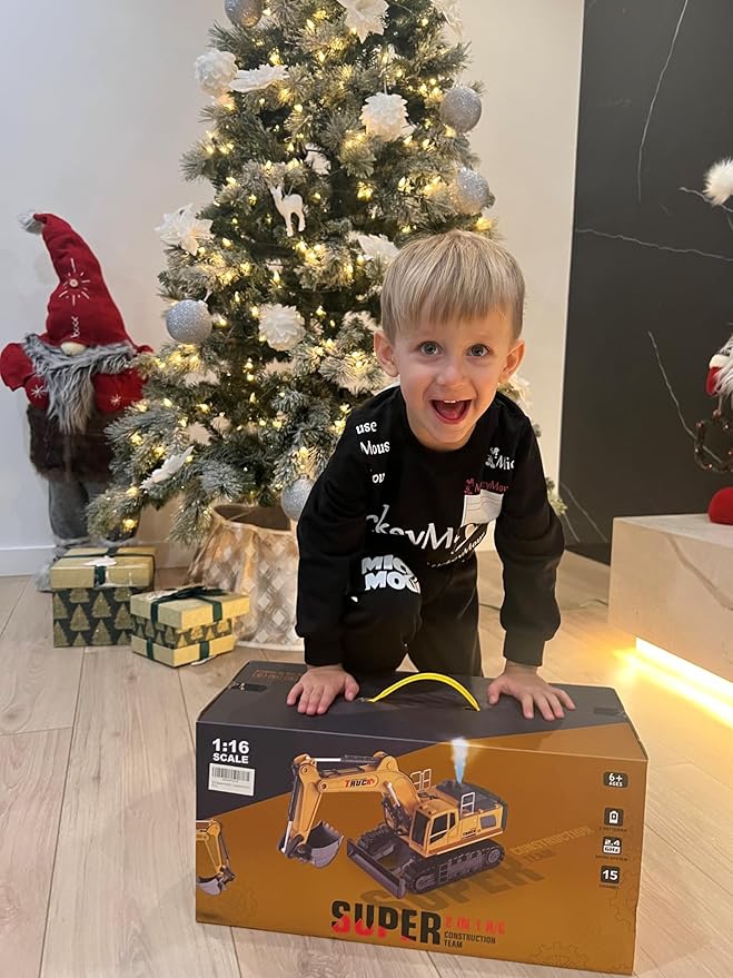 - Dynamic Control: Still looking for the 2025 funniest Christmas gifts for your older kids? Elevate playtime to new heights with the 15-Channel Remote Control Excavator Toy. Dig, lift, unload, and rotate a full 680 degrees – all with a touch of a button. Engage in lifelike sound effects, captivating lights, and an exhilarating spray function. You can even turn off the sound for quieter indoor play(The Excavator Size: 20.5" x 11.2"x 6.5")