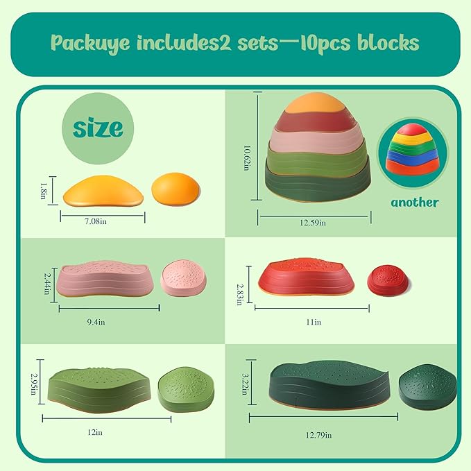 - EXTRA 10 PCS MAKE THE EVENT MORE FUN: Our colorful and gender neutral toddler stepping stones enhance your children’s balance and coordination abilities. They are suitable for indoor and outdoor settings