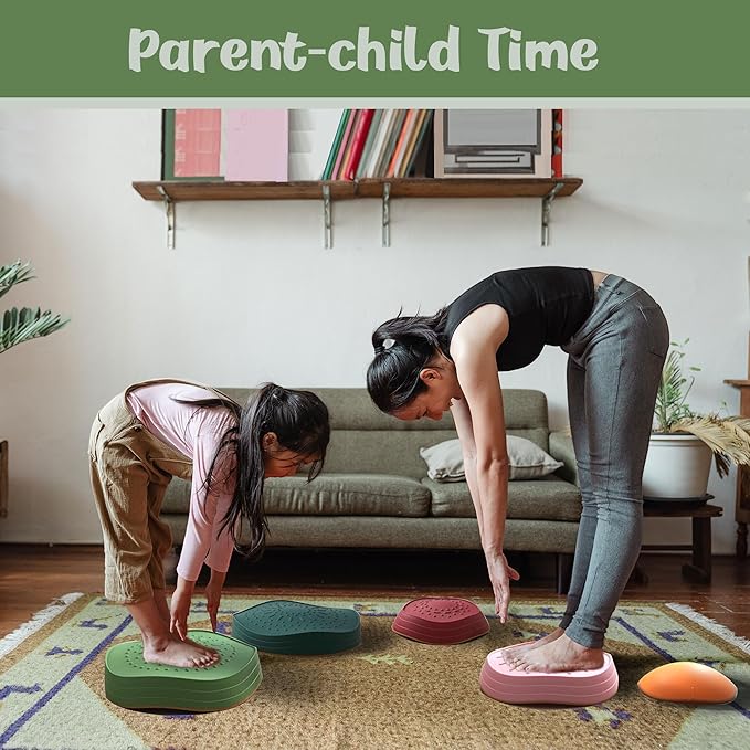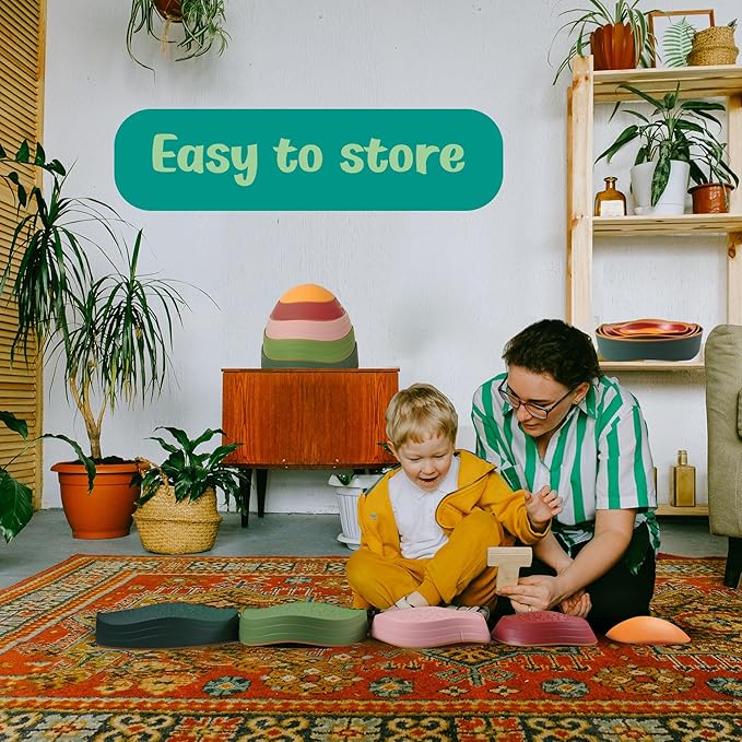 - FUNCTIONAL DESIGN & EASY TO STORE: Kids can play with their friends or family members on balance stepping stones which are sturdy and can support up to 220lbs of weight. They are also easy to wipe clean and can also be stacked together for easy storage when not in use