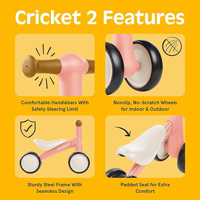 - Learn to Ride Early: Retrospec Cricket is designed for toddlers ages 12-24 months of age to develop the advanced motor skills needed to walk and eventually ride. Great toy for a 1 year old girl or boy!