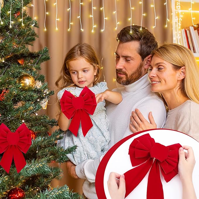 - Various Occasions: Our red velvet Christmas bows are the first choice for Xmas decorations, can be used to decorate your Christmas tree, Christmas wreaths, fireplace, staircases, fences, indoor party decorations, gift wrapping and more, also a great gift for your family and friends.