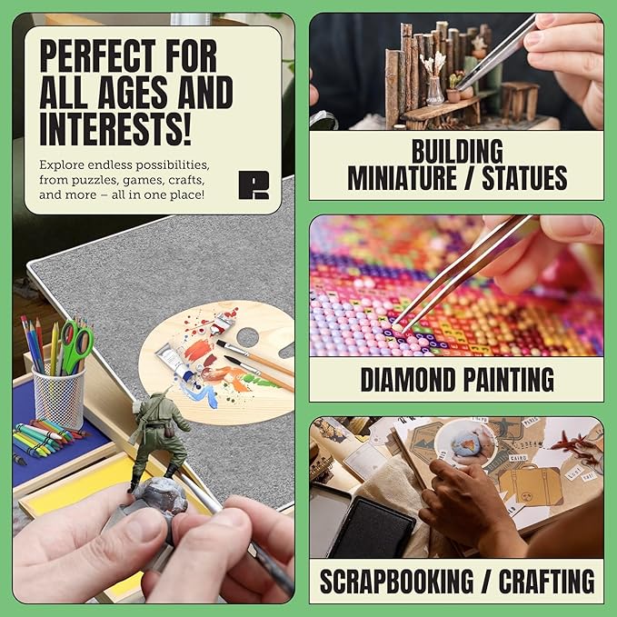 - Customizable Comfort: Tailor your puzzle experience with our tilting puzzle board. Adjust the angle to your preference for better comfort and ergonomics, reducing strain on your neck and back. Dive into hours of fun with this innovative jigsaw puzzle table design that enhances your puzzling pleasure