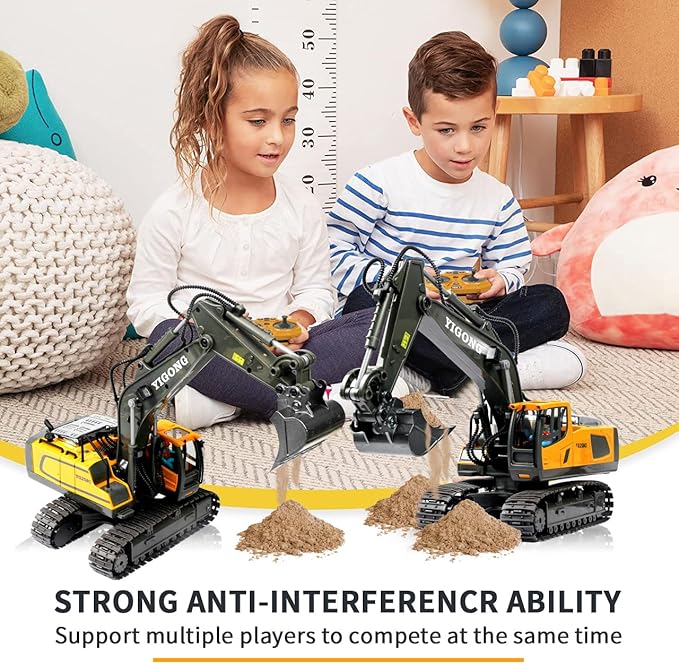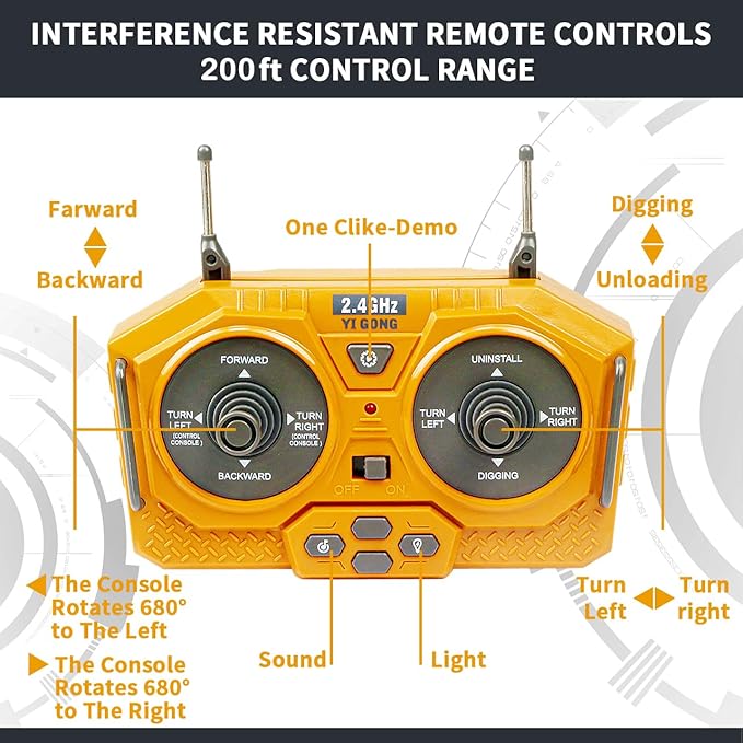 - 2.4Ghz Flexible Remote Control: All-round Precise Control! Better anti-interference performance help children complete various difficult simulated tasks. 2.4 GHz channel will not interference with other remote control excavator toys so kids can play multiple rc vehicles together with superior experience. Just get ready to have fun with it!