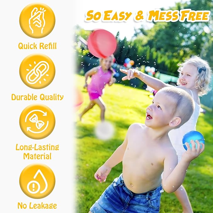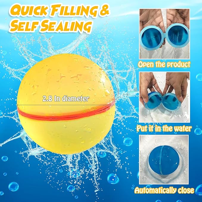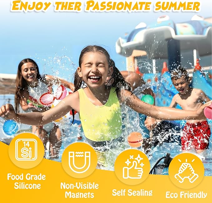 - Quick-Fill Magnetic Water Balloons – No Mess, No Hassle! – Tired of traditional water balloons that take forever to fill? Our reusable magnetic water balloons for kids use self-sealing technology for an instant quick-fill experience. Just submerge and let them seal—no knots, no mess! Enjoy effortless water fights with reusable water balloons bulk, perfect for pool water balloons refillable fun.