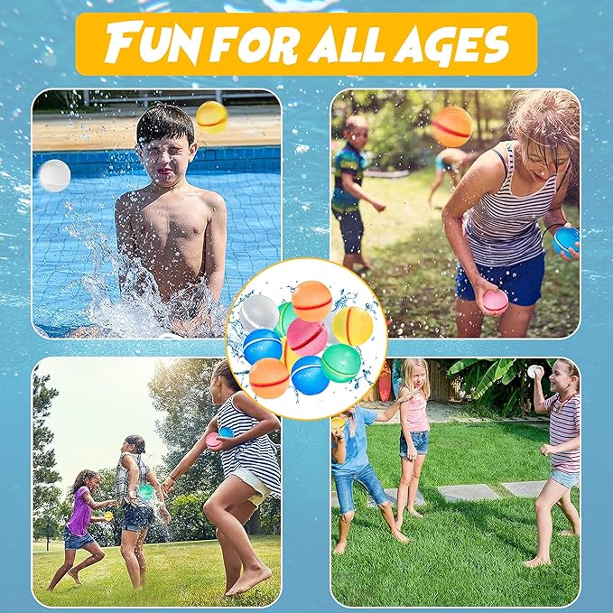 - Best Gift for Kids, Family & Friends – Summer Fun Guaranteed! – Make birthdays, holidays, and gatherings unforgettable with our reusable water balloons 100 pack. Great for all ages, these water balloons for kids magnetic offer quick-fill, refillable excitement, making them the perfect water balloons for pool, garden, or party fun. Say hello to refillable water ball excitement and goodbye to plastic waste!