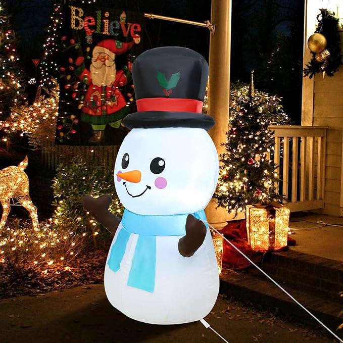 - ☃️【Cute Christmas Inflatables】- You'll get an adorable 4ft Christmas inflatable snowman decoration. Standing at 4ft, similar to a child's height, with a cute design, it's a favorite among kids. It can be their snowman buddy, adding joy to their Christmas holidays.The best Christmas Inflatable gift for kids