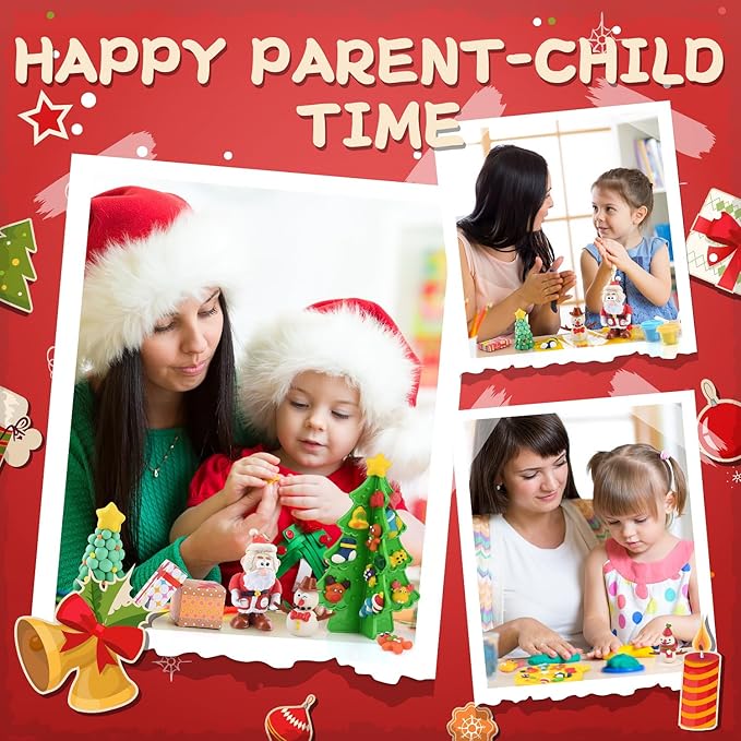 - DIY PLAY Rich Christmas Color Dough Set - Our dough kit adopts the latest Christmas theme. Including colored plasticine*7, Santa Claus accessories*6, snowman kit accessories*6, Christmas tree components*2, Christmas tree pendant mold*1, small gift box*3, tools*2. It is a great dough sets for kids ages 4-8, allowing kids to create a perfect Christmas crafts for themselves.