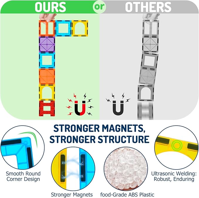 - Safe & Durable Kids Toys --- Our magnetic tiles toys are "CPSIA" and "ASTM" certified and do not contain any harmful gases. Made of safe and durable ABS plastic with advanced ultrasonic welding technology. The smooth surface and rounded edges allow children to play safely without causing scratches or damage. This is a perfect set of toys for 3 4 5 6 7 year old