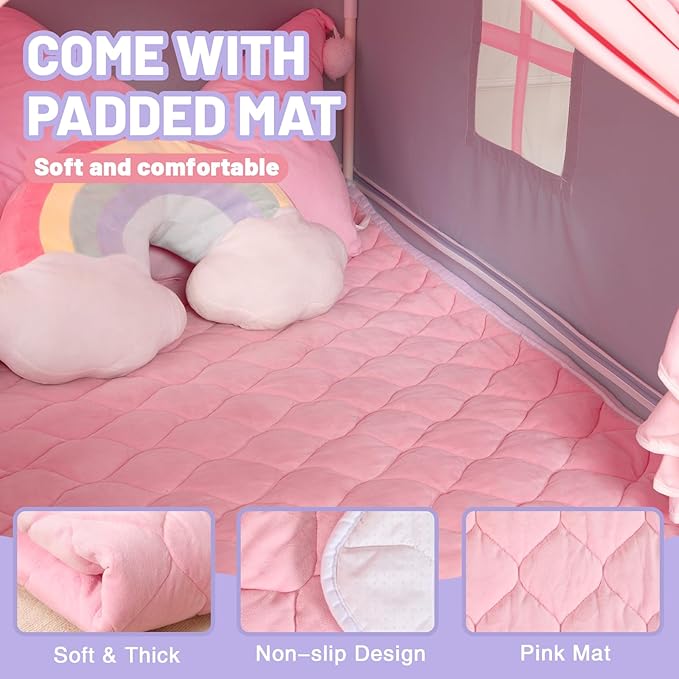 - Pink Mat: This kids play tent comes with a pink mat that is designed to be non-slip. The mat ensures safer playtime, more comfortable reading, and napping inside the tent. Also is suitable to be a first birthday gift for girls