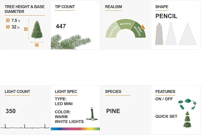 - 🎄 【IDEAL SIZING】This prelit Christmas tree stands 7.5 feet tall and 2.5 feet in diameter at the base. Includes a 59-inch extension cord for convenience. Product may ship compressed — simply shape the branches for an elegant, natural look as shown in the images.