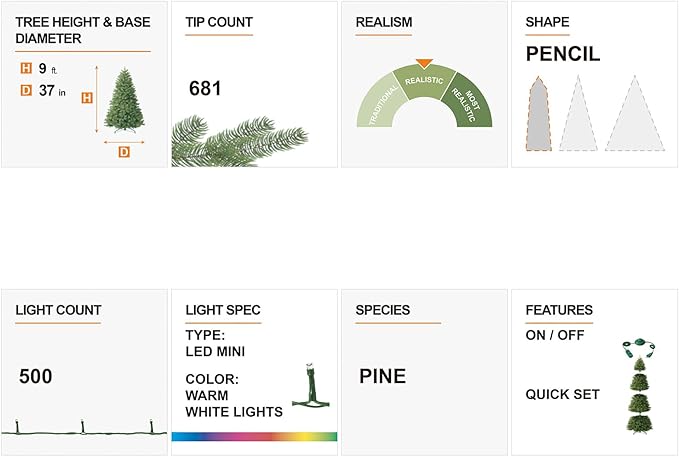 - Natural lifelike appeal: 681 individually crafted branch tips and 500 warm white LED light bulbs create a full-bodied, charming tree that resembles the real thing