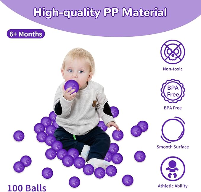 Ball Pit Balls 100 Phthalate Free BPA Free Crush Proof 2.16 Inches Plastic Balls for Ball Pit Ideal Gift for Toddlers Babies Kids Pool Water Toys Play Tent, Purple